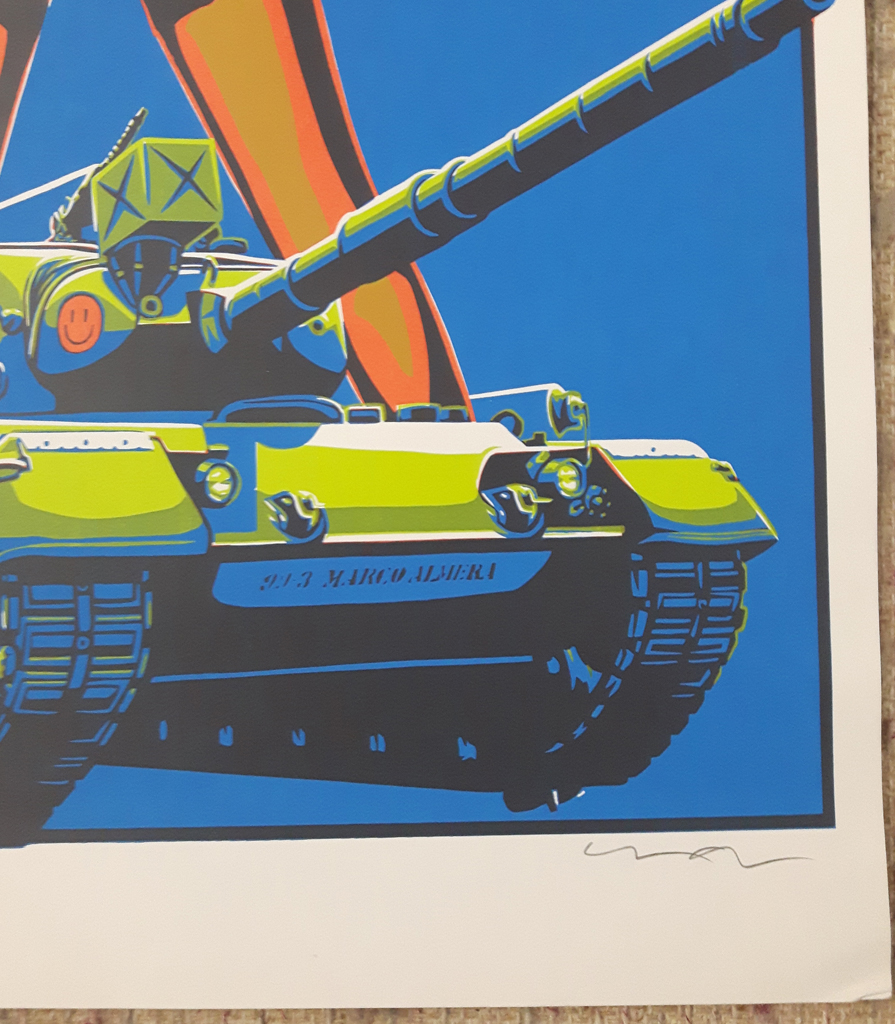 KerrisdaleGallery.com – Stock ID# AM081sv – “Dictators, Lazy Cowgirls, May 13 (1999) Club Mesa” by Marco Almara, detail to show artist signature – original serigraph/ silkscreen, limited edition, numbered 81/500 and signed by artist – vintage collectible art print