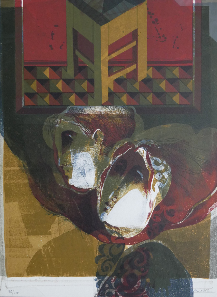 KerrisdaleGallery.com – Stock ID#MA078lv-sn – (untitled) “Interior: Two Women With Chair” by Alvar Sunol Munoz-Ramos – original lithograph, signed by artist and numbered 78/150