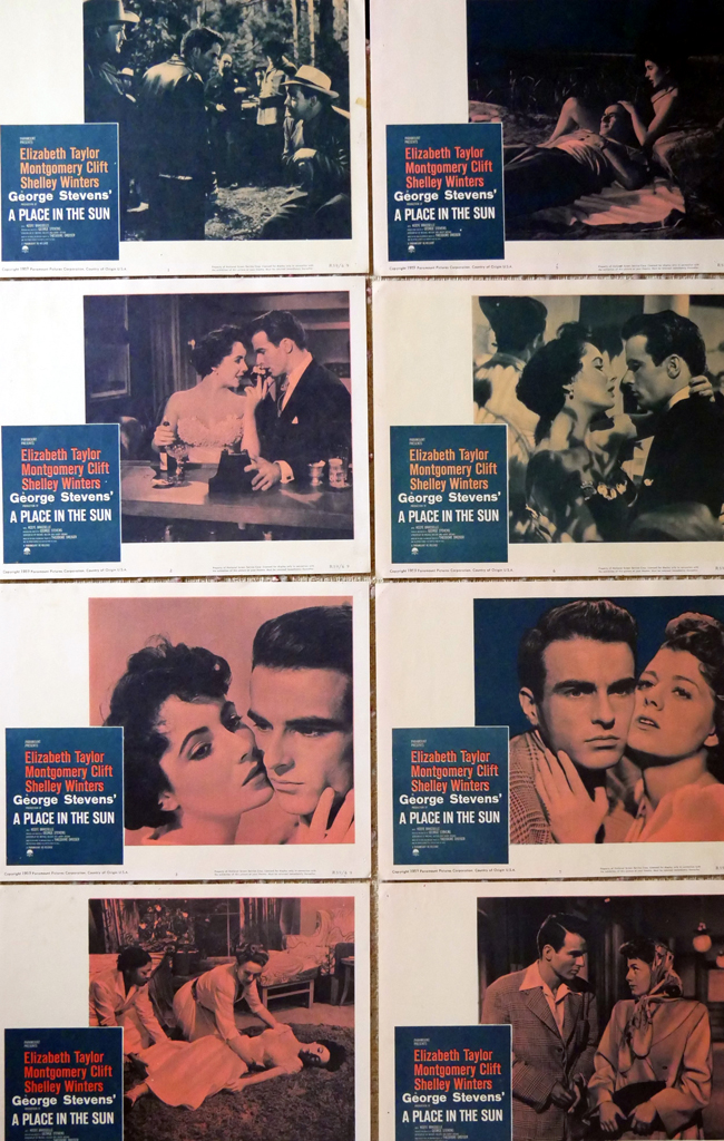 KerrisdaleGallery.com - Stock ID#MPLCx8SUN59ph - "A Place in the Sun" (1959 re-release, Paramount, USA, NSS#R59/60)- Original Vintage Movie Poster Lobby Cards, Set of 8 - feature view - Drama starring Elizabeth Taylor, Montgomery Clift, Shelley Winters. Directed by George Stevens.