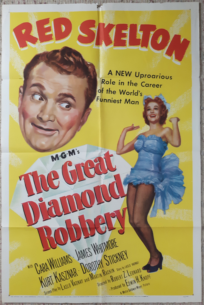 KerrisdaleGallery.com - Stock ID#MPOSx1DIA53pv - "The Great Diamond Robbery" One 1 Sheet, 41"x27"(1953, MGM, 53/486) starring Red Skelton - full view with margins - authentic vintage movie poster 41x27 one sheet/ 1 sheet