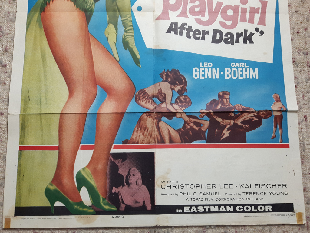 KerrisdaleGallery.com – Stock ID#MPOSx1PLY62pv – “Playgirl After Dark ” One 1 Sheet, 41″x27″(1962, Topaz, 62/279) starring Jayne Mansfield – detail view to show text and condition – authentic vintage movie poster 41×27 one sheet/ 1 sheet