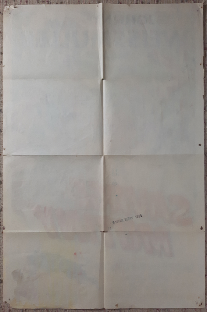 KerrisdaleGallery.com – Stock ID#MPOSx1SAV53pv – “Savage Mutiny ” One 1 Sheet, 41″x27″(1952, Columbia, 53/9) starring Johnny Weismuller as Jungle Jim – view of reverse to show condition – authentic vintage movie poster 41×27 one sheet/ 1 sheet