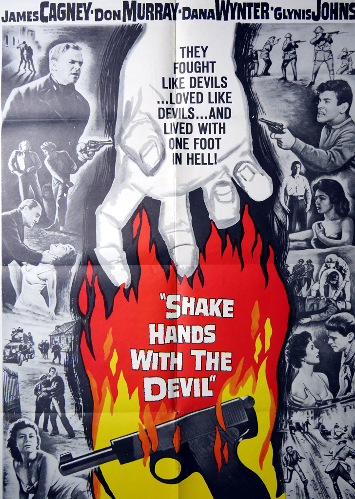 KerrisdaleGallery.com – Stock ID#MPOSx1SHA59pv – “Shake Hands With The Devil” (1959, UA, Filmed in Ireland, poster for USA, NSS#59/182)- Original Vintage Movie Poster One Sheet/folded 1-SH, 41 x 27 inches – feature view – Action drama starring James Cagney, Don Murray, Dana Winter, Glynis Johns. Directed by Michael Anderson.