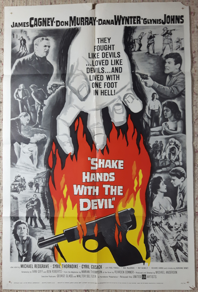 KerrisdaleGallery.com – Stock ID#MPOSx1SHA59pv – “Shake Hands With The Devil” One 1 Sheet, 41″x27″(1959, UA, 59/182) starring James Cagney, Don Murray, Dana Wynter, Glynis Johns< Michael Redgrave - full view with margins - authentic vintage movie poster 41x27 one sheet/ 1 sheet